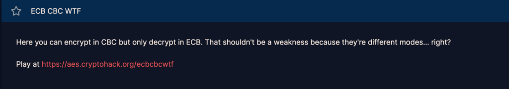 CBC로 암호화하지만 ECB로만 해독할 수 있다고 한다.. 무슨 말일까? 문제를 보자.