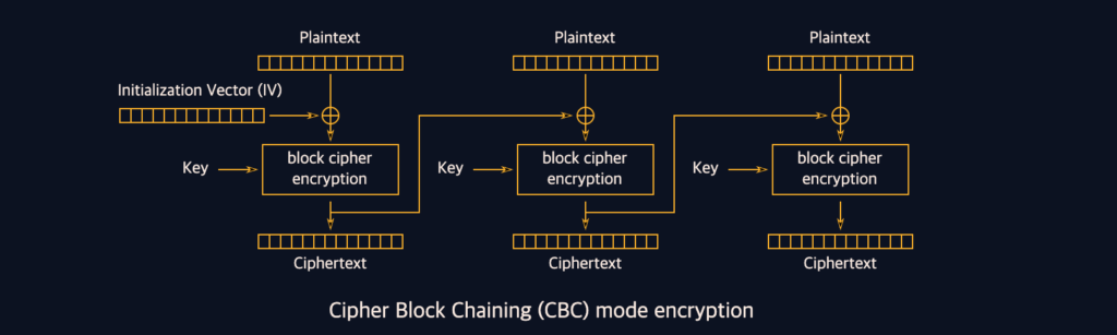 CBC 모드의 구조를 보여주고 있다. 현암시간에 배웠기에 구체적인 설명은 넘어아겠다.
