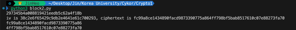 print(f'iv is {iv}, ciphertext is {ciphertext}')