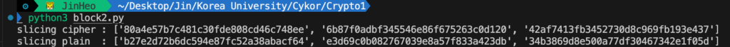 먼저 위와 같은 코드로 iv와 암호문을 나눴고, 암호문은 블록 단위로 쪼개줬다.