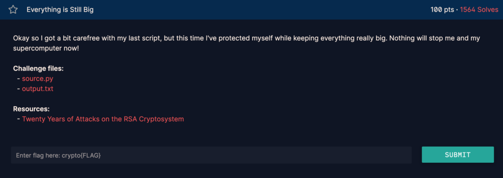 🚩 crypto{bon3h5_4tt4ck_i5_sr0ng3r_th4n_w13n3r5}