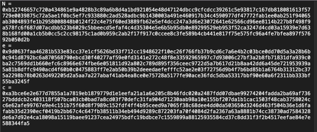 N = 0xb12746657c720a434861e9a4828b3c89a6b8d4a1bd921054e48d47124dbcc9cfcdcc39261c5e93817c167db818081613f57729e0039875c72a5ae1f0bc5ef7c933880c2ad528adbc9b1430003a491e460917b34c4590977df47772fab1ee0ab251f94065ab3004893fe1b2958008848b0124f22c4e75f60ed3889fb62e5ef4dcc247a3d6e23072641e62566cd96ee8114b227b8f498f9a578fc6f687d07acdbb523b6029c5bbeecd5efaf4c4d35304e5e6b5b95db0e89299529eb953f52ca3247d4cd03a15939e7d638b168fd00a1cb5b0cc5c2cc98175c1ad0b959c2ab2f17f917c0ccee8c3fe589b4cb441e817f75e575fc96a4fe7bfea897f57692b050d2b